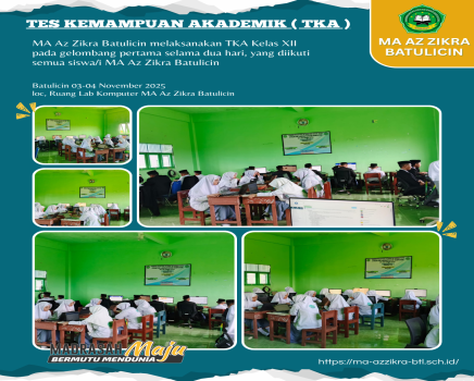 MA Az Zikra Batulicin melaksanakan TKA Kelas XII pada gelombang pertama selama dua hari, yang diikuti semua siswa/i MA Az Zikra Batulicin